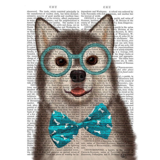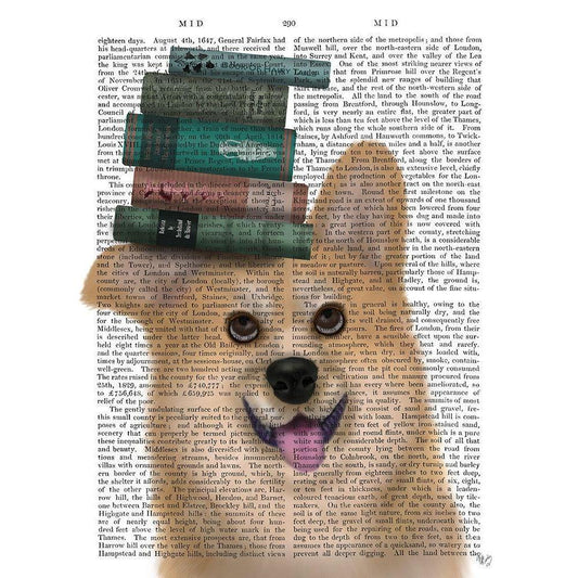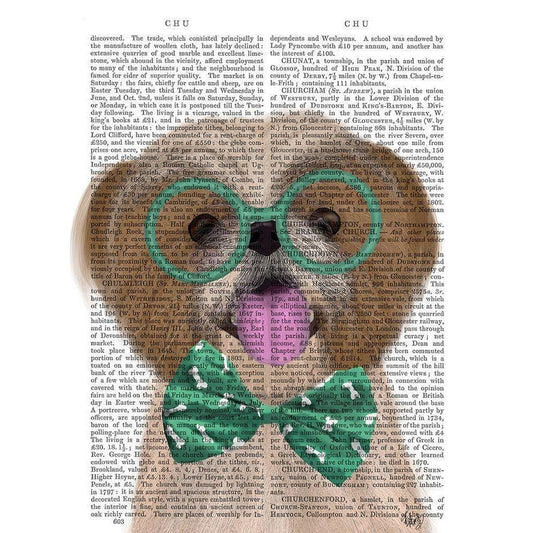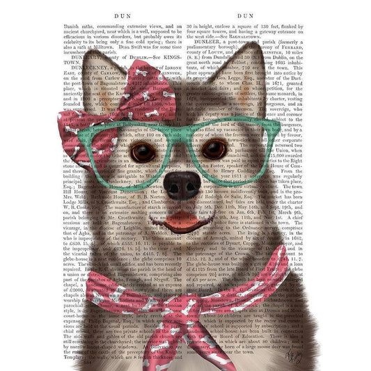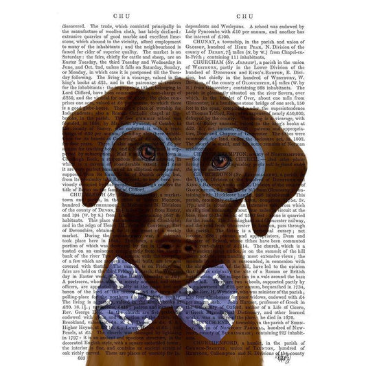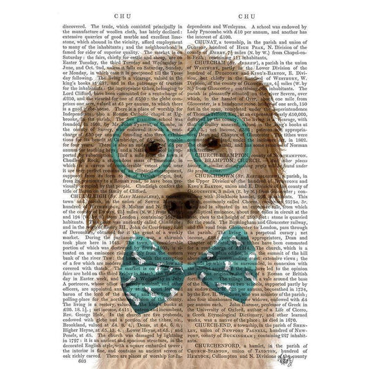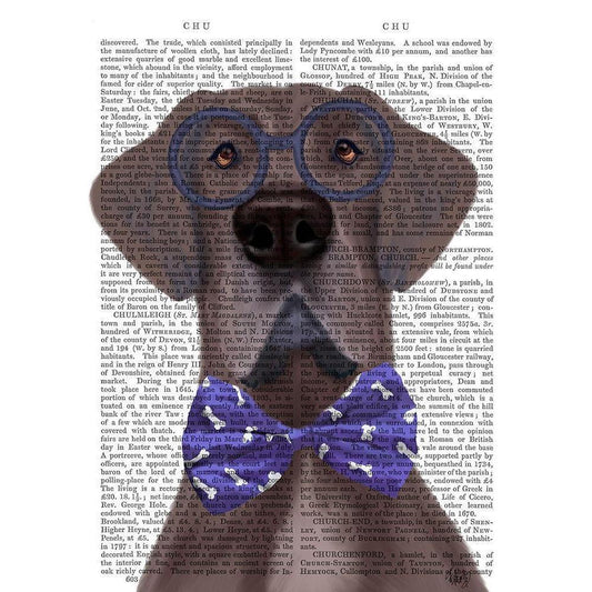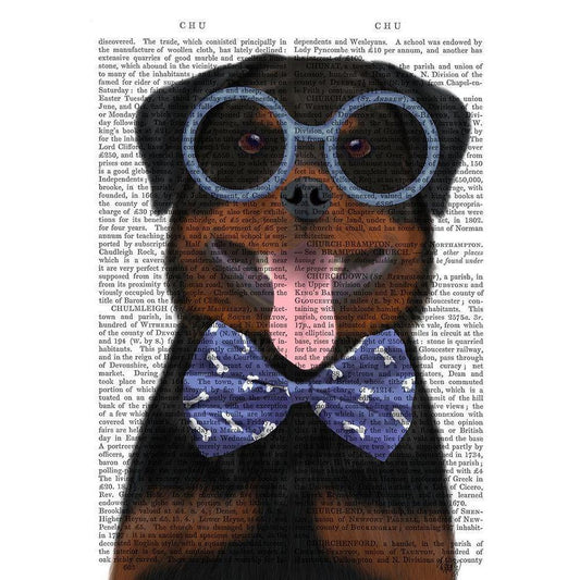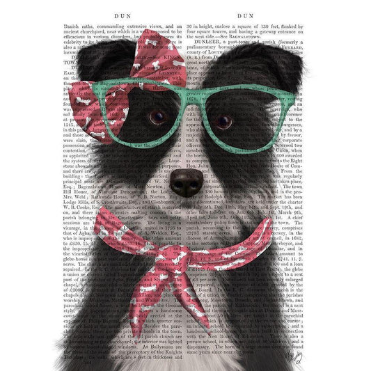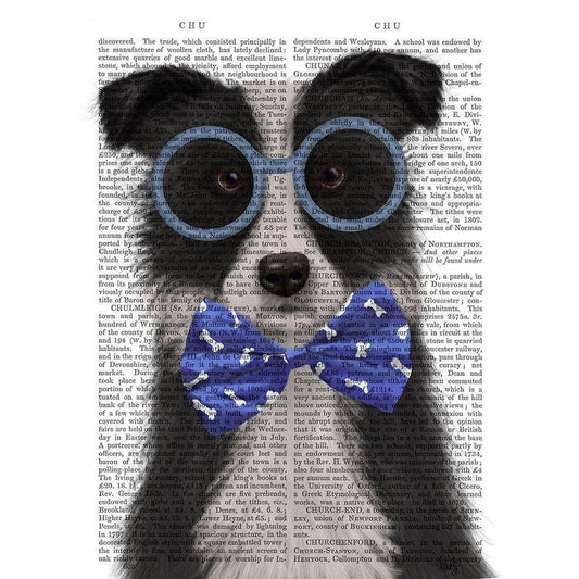 Border Collie, Tricolour, with Glasses and Bow Tie Black Modern Wood Framed Art Print with Double Matting by Fab Funky