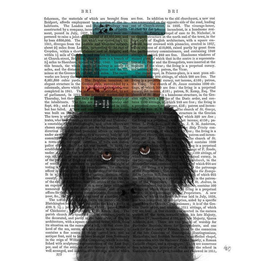 Border Collie, Black and White, with Glasses and Bow Tie Black Modern Wood Framed Art Print with Double Matting by Fab Funky