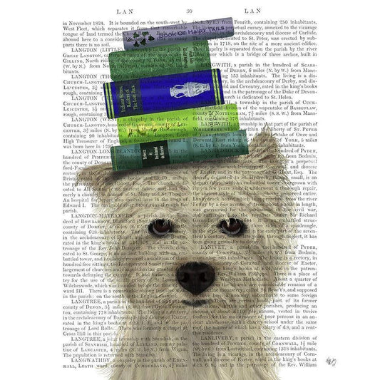 Westie and Books Black Modern Wood Framed Art Print with Double Matting by Fab Funky