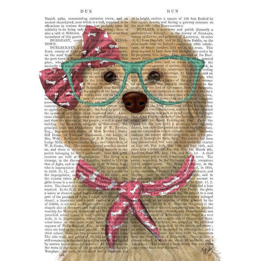 Bichon Frise with Glasses and Bow Tie Black Modern Wood Framed Art Print with Double Matting by Fab Funky