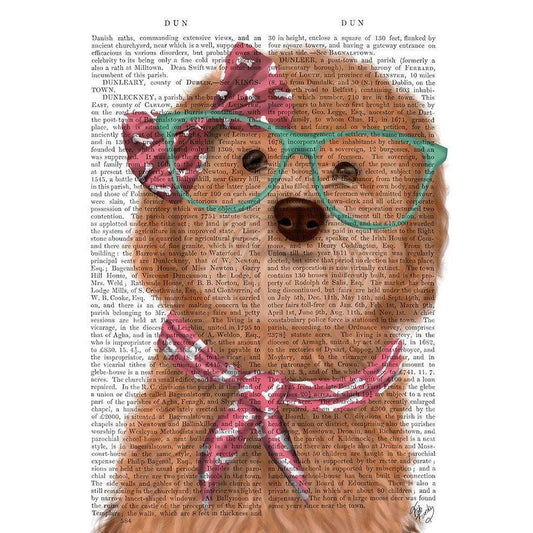 Cockerpoo, Apricot, with Glasses and Scarf Black Modern Wood Framed Art Print with Double Matting by Fab Funky