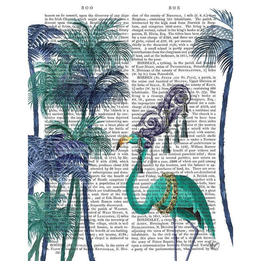 Green Flamingo Palm Trees Black Modern Wood Framed Art Print with Double Matting by Fab Funky