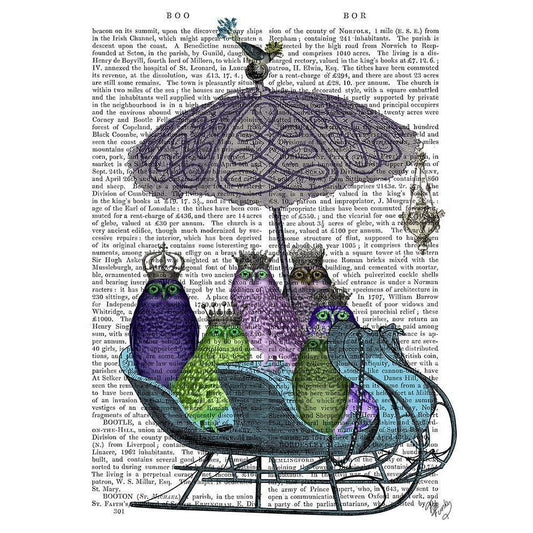 Owl Sled Black Modern Wood Framed Art Print with Double Matting by Fab Funky