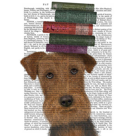Brown Labrador and Books Black Modern Wood Framed Art Print with Double Matting by Fab Funky