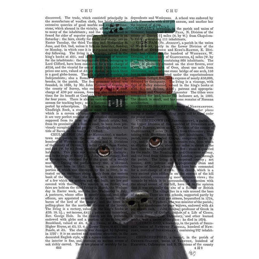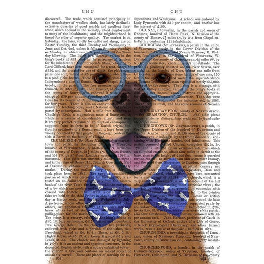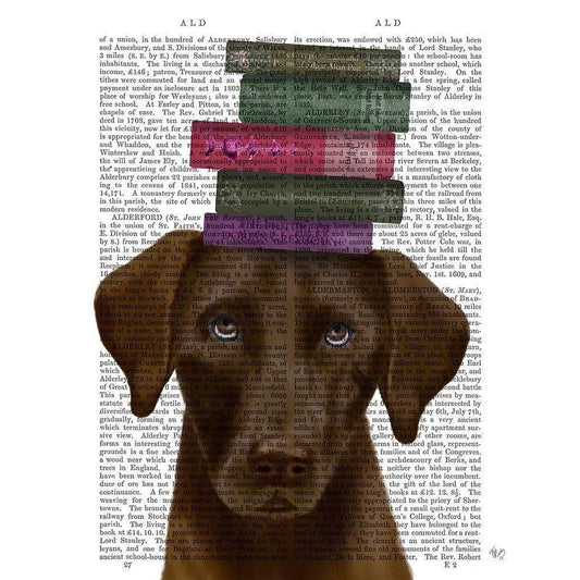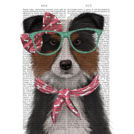 Border Collie, Tricolour, with Glasses and Scarf Black Modern Wood Framed Art Print with Double Matting by Fab Funky
