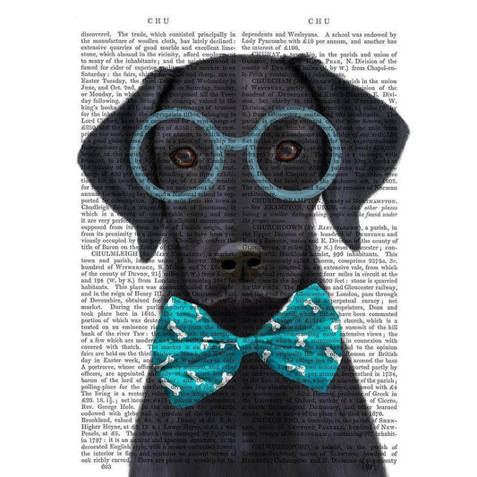 Black Labrador with Glasses and Bow Tie Black Modern Wood Framed Art Print with Double Matting by Fab Funky