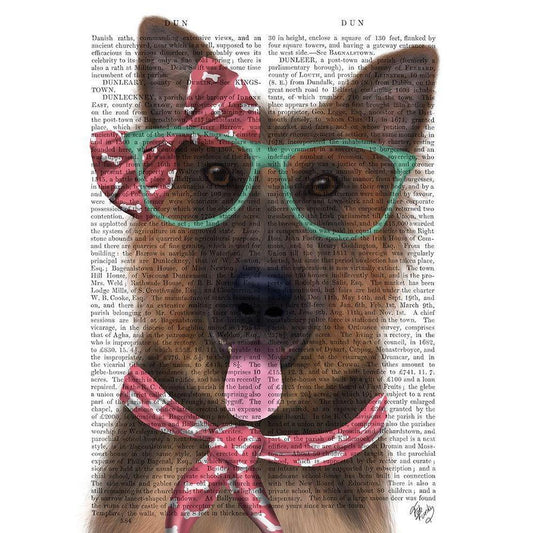 Cockerpoo, Apricot, with Glasses and Bow Tie Black Modern Wood Framed Art Print with Double Matting by Fab Funky
