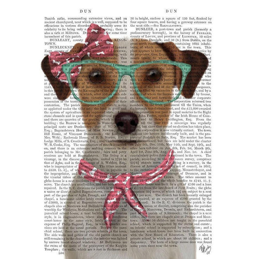 Beagle with Glasses and Bow Tie Black Modern Wood Framed Art Print with Double Matting by Fab Funky