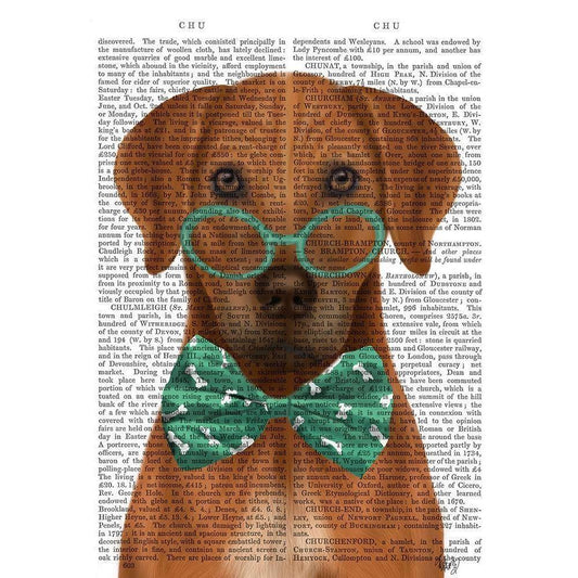Jack Russell with Glasses and Bow Tie Black Modern Wood Framed Art Print with Double Matting by Fab Funky
