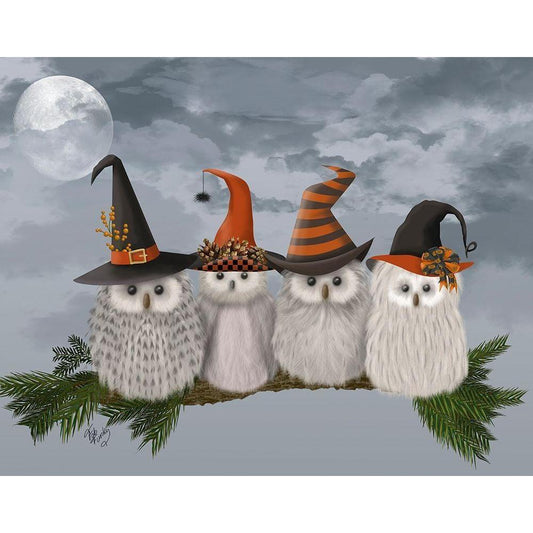Halloween Halloween Owls on Branch Black Modern Wood Framed Art Print with Double Matting by Fab Funky