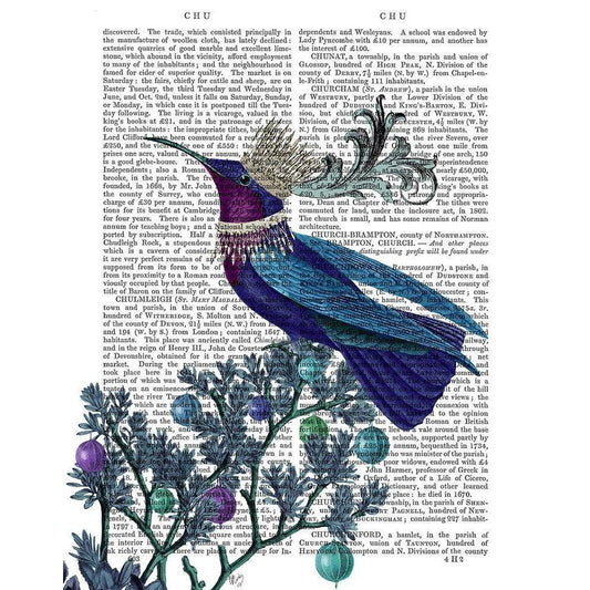 Blue Bird With Flourish Black Modern Wood Framed Art Print with Double Matting by Fab Funky