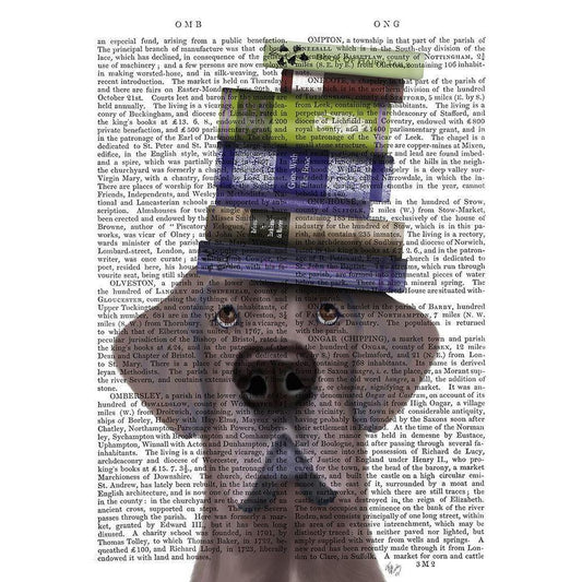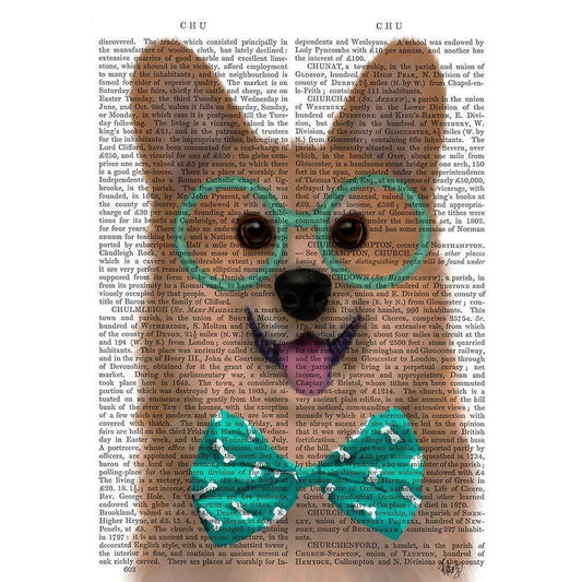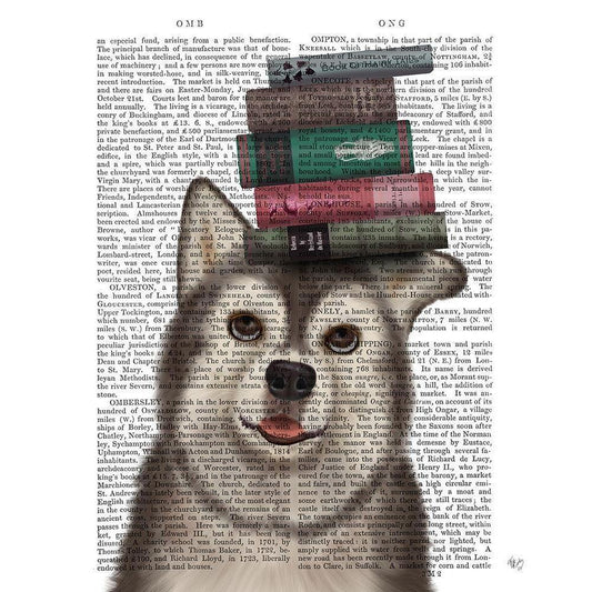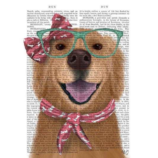 English Bulldog And Books Black Modern Wood Framed Art Print with Double Matting by Fab Funky
