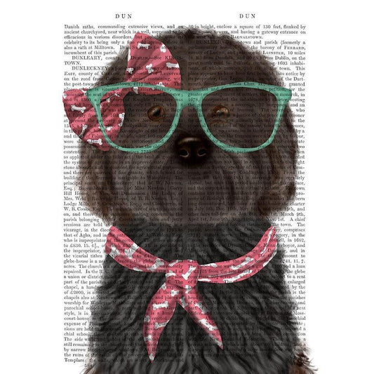 Cockerpoo, Black, with Glasses and Scarf Black Modern Wood Framed Art Print with Double Matting by Fab Funky