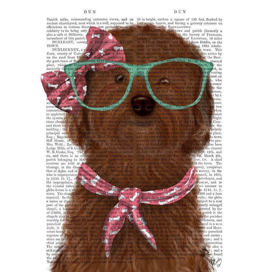 Golden Retriever, Glasses and Scarf Black Modern Wood Framed Art Print with Double Matting by Fab Funky