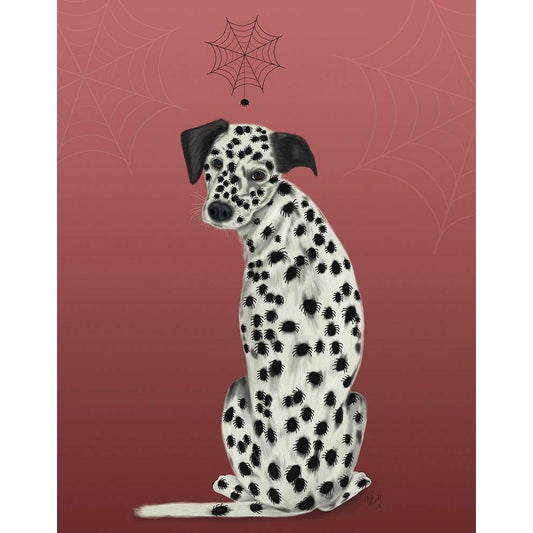 Halloween Dalmatian and Spiders Black Modern Wood Framed Art Print with Double Matting by Fab Funky