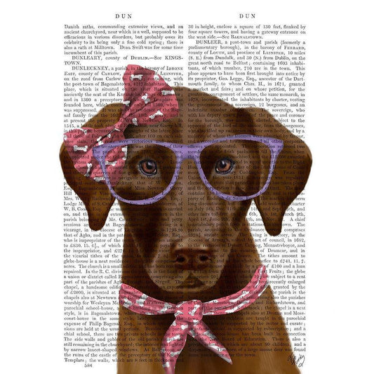 Chocolate Labrador with Glasses and Scarf Black Modern Wood Framed Art Print with Double Matting by Fab Funky