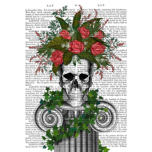 Skull with Roses and Berries Black Modern Wood Framed Art Print with Double Matting by Fab Funky