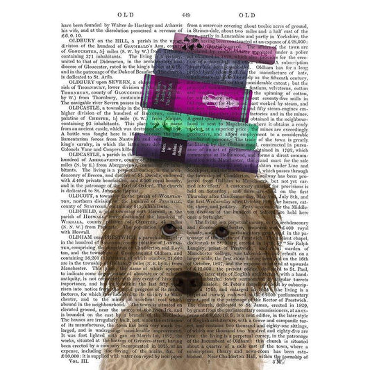 Beagle and Books Black Modern Wood Framed Art Print with Double Matting by Fab Funky