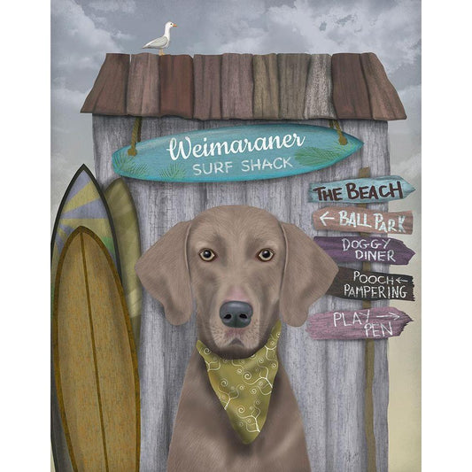 Weimaraner Surf Shack Black Modern Wood Framed Art Print with Double Matting by Fab Funky