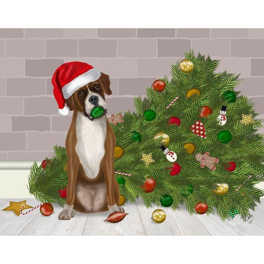 Christmas Boxer and Broken Christmas Tree Black Modern Wood Framed Art Print with Double Matting by Fab Funky