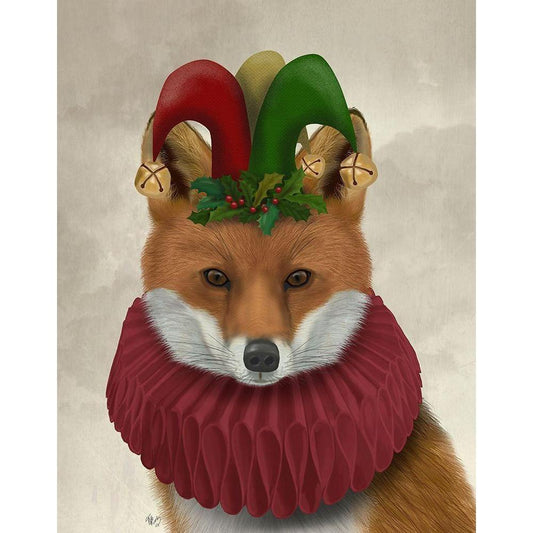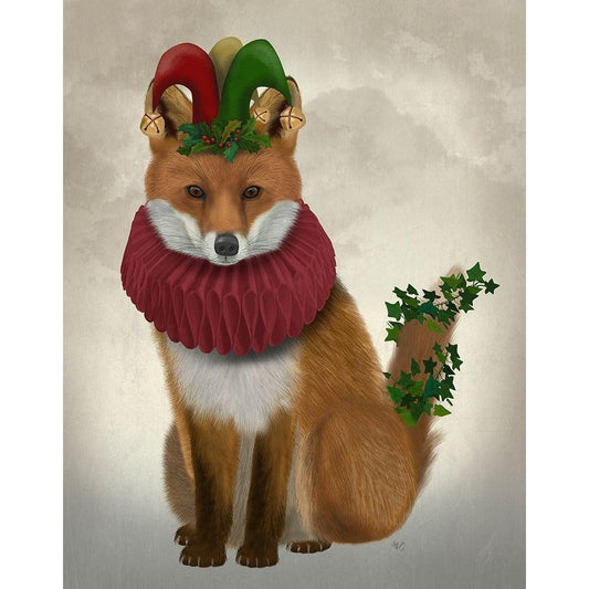 Christmas Foxy Christmas Fool Black Modern Wood Framed Art Print with Double Matting by Fab Funky
