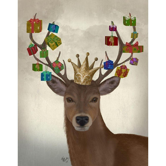 Christmas Gift Bearing Deer Black Modern Wood Framed Art Print with Double Matting by Fab Funky