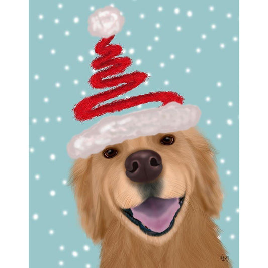 Christmas Golden Retriever and Spring Santa Hat Black Modern Wood Framed Art Print with Double Matting by Fab Funky