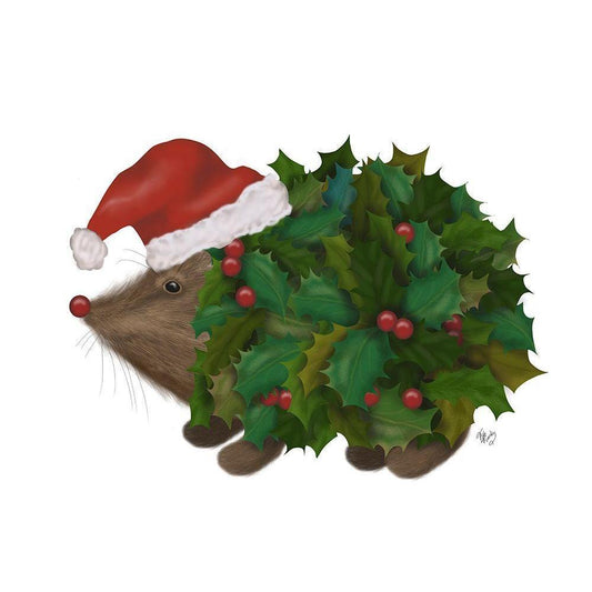 Christmas Holly Hedgehog Black Modern Wood Framed Art Print with Double Matting by Fab Funky