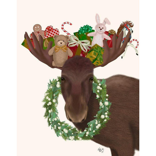 Christmas Moose and Christmas Gifts Black Modern Wood Framed Art Print with Double Matting by Fab Funky