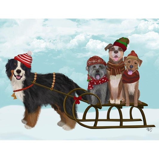 Christmas Mutt Sled Black Modern Wood Framed Art Print with Double Matting by Fab Funky