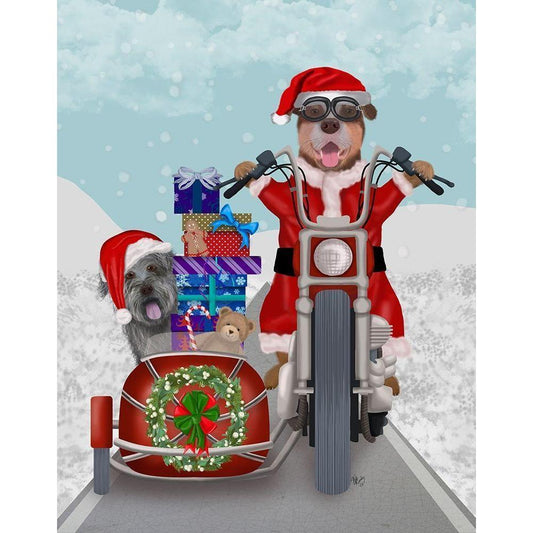 Christmas Mutts Christmas Chopper Black Modern Wood Framed Art Print with Double Matting by Fab Funky