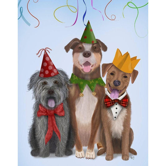 Christmas Party Mutts Black Modern Wood Framed Art Print with Double Matting by Fab Funky