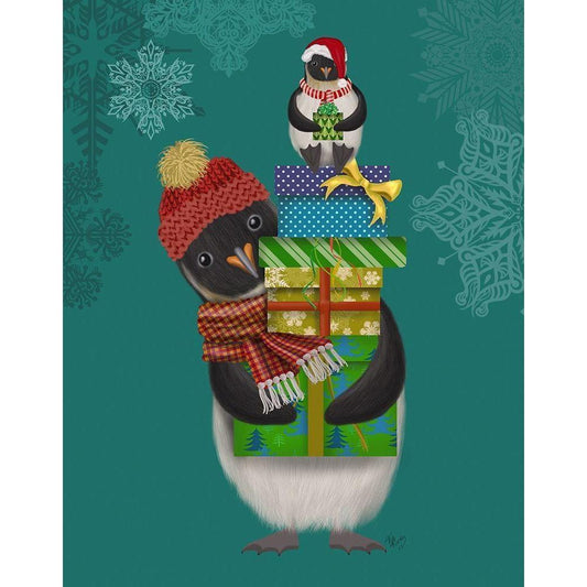 Christmas Penguin Gifts Black Modern Wood Framed Art Print with Double Matting by Fab Funky