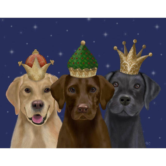 Christmas Labradors, Three Kings Black Modern Wood Framed Art Print with Double Matting by Fab Funky