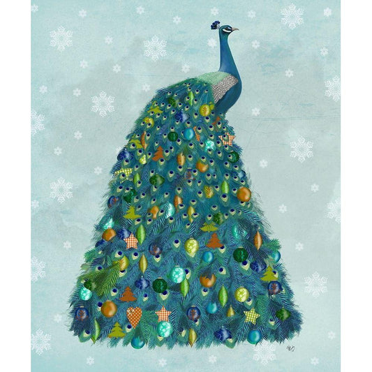 Christmas Peacock Christmas Tree Black Modern Wood Framed Art Print with Double Matting by Fab Funky