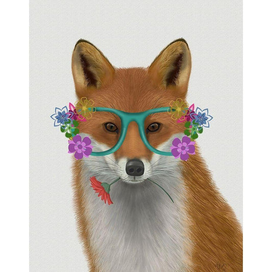 Fox and Flower Glasses Black Modern Wood Framed Art Print with Double Matting by Fab Funky
