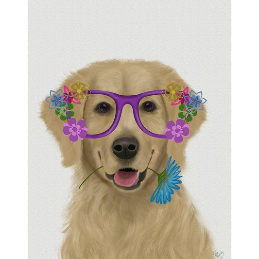 Golden Retriever and Flower Glasses Black Modern Wood Framed Art Print with Double Matting by Fab Funky