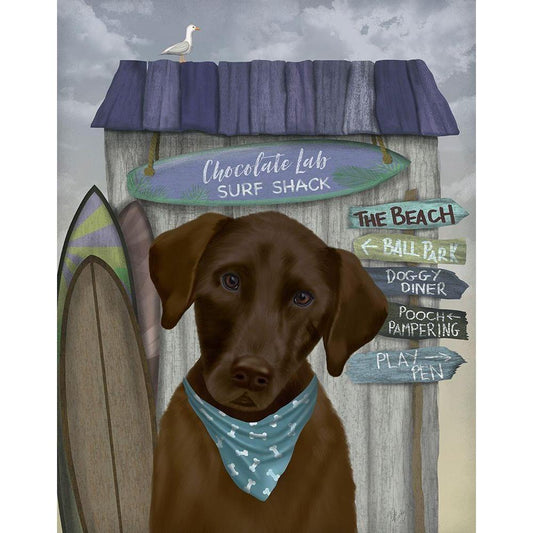 Chocolate Labrador Surf Shack Black Modern Wood Framed Art Print with Double Matting by Fab Funky