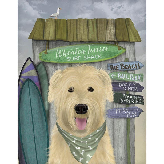 Wheaten Terrier Surf Shack Black Modern Wood Framed Art Print with Double Matting by Fab Funky