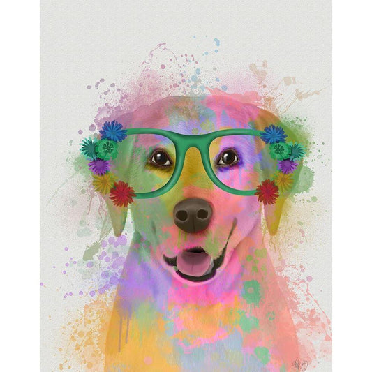 Yellow Labrador Rainbow Splash Black Modern Wood Framed Art Print with Double Matting by Fab Funky