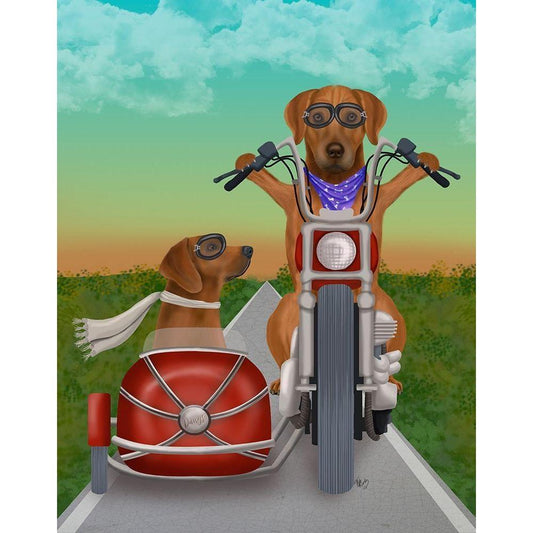 Rhodesian Ridgeback Chopper and Sidecar Black Modern Wood Framed Art Print with Double Matting by Fab Funky