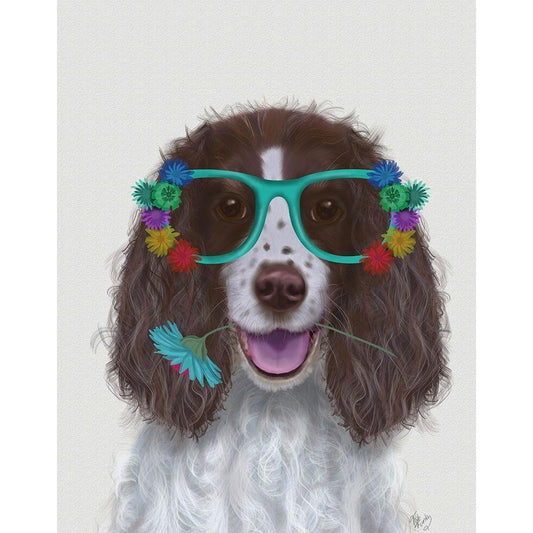 Springer Spaniel and Flower Glasses Black Modern Wood Framed Art Print with Double Matting by Fab Funky