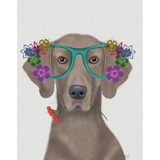 Weimaraner and Flower Glasses Black Modern Wood Framed Art Print with Double Matting by Fab Funky