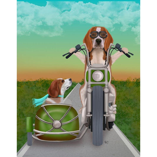 Beagle Chopper and Sidecar Black Modern Wood Framed Art Print with Double Matting by Fab Funky