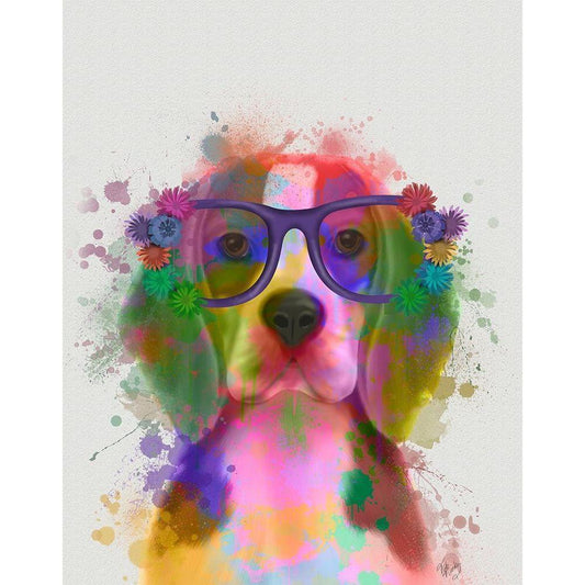 Beagle Rainbow Splash 2 Black Modern Wood Framed Art Print with Double Matting by Fab Funky