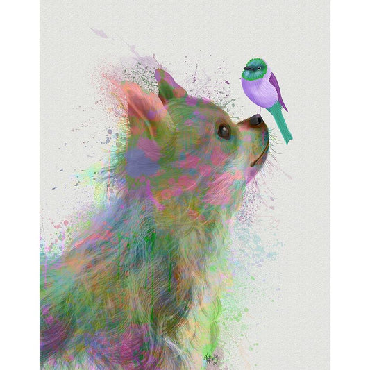 Chihuahua, Long Haired, Rainbow Splash Black Modern Wood Framed Art Print with Double Matting by Fab Funky