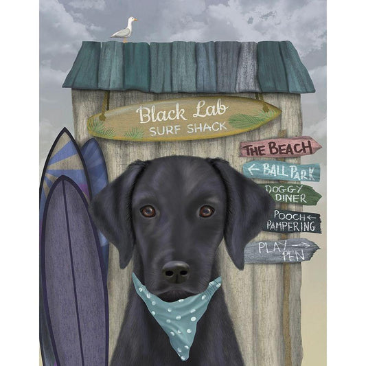 Black Labrador Surf Shack Black Modern Wood Framed Art Print with Double Matting by Fab Funky