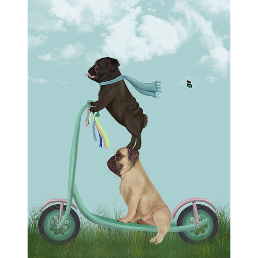 Pug Scooter Black Modern Wood Framed Art Print with Double Matting by Fab Funky