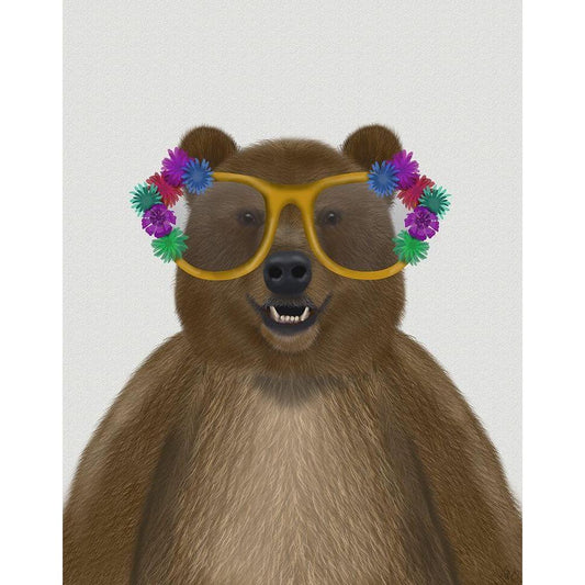 Bear and Flower Glasses Black Modern Wood Framed Art Print with Double Matting by Fab Funky