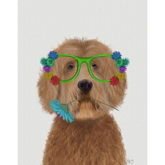 Labradoodle Golden and Flower Glasses Black Modern Wood Framed Art Print with Double Matting by Fab Funky